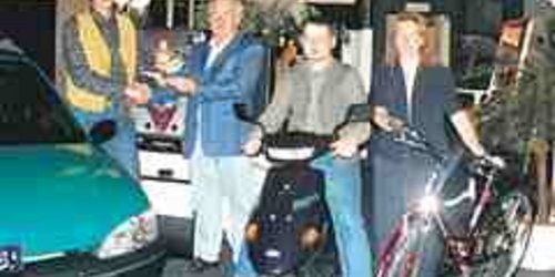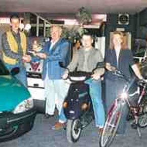 Erster Preis ein Peugeot 106, zweiter Preis ein Motorroller und dritter Preis ein Trekkingrad. Alles natürlich neu. Damit sind die drei ausgelosten…
