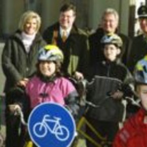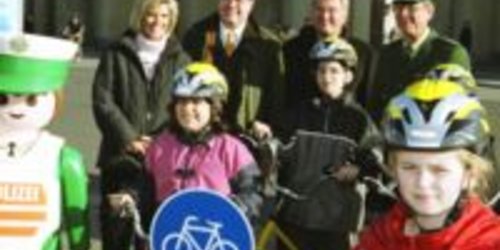 Horst Bauriedel und Tochter Claudia Kirpal spendeten über ein Dutzend Fahrräder, außerdem zahlreiche Schutzhelme für die Berliner Verkehrsschule.Bezir…