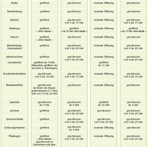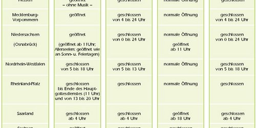 Öffnungszeiten für Spielstätten: Stille Feiertage im November 2000