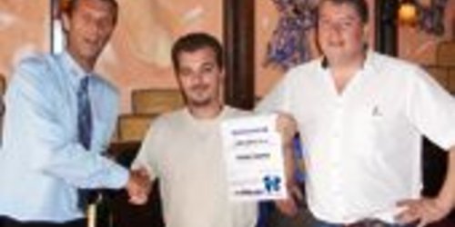 Viel Spaß hatten die Automatenunternehmer und Zwillingsbrüder Michael Remmling und Markus Remmling während ihres Überraschungsbesuchs im Sigert Verlag…